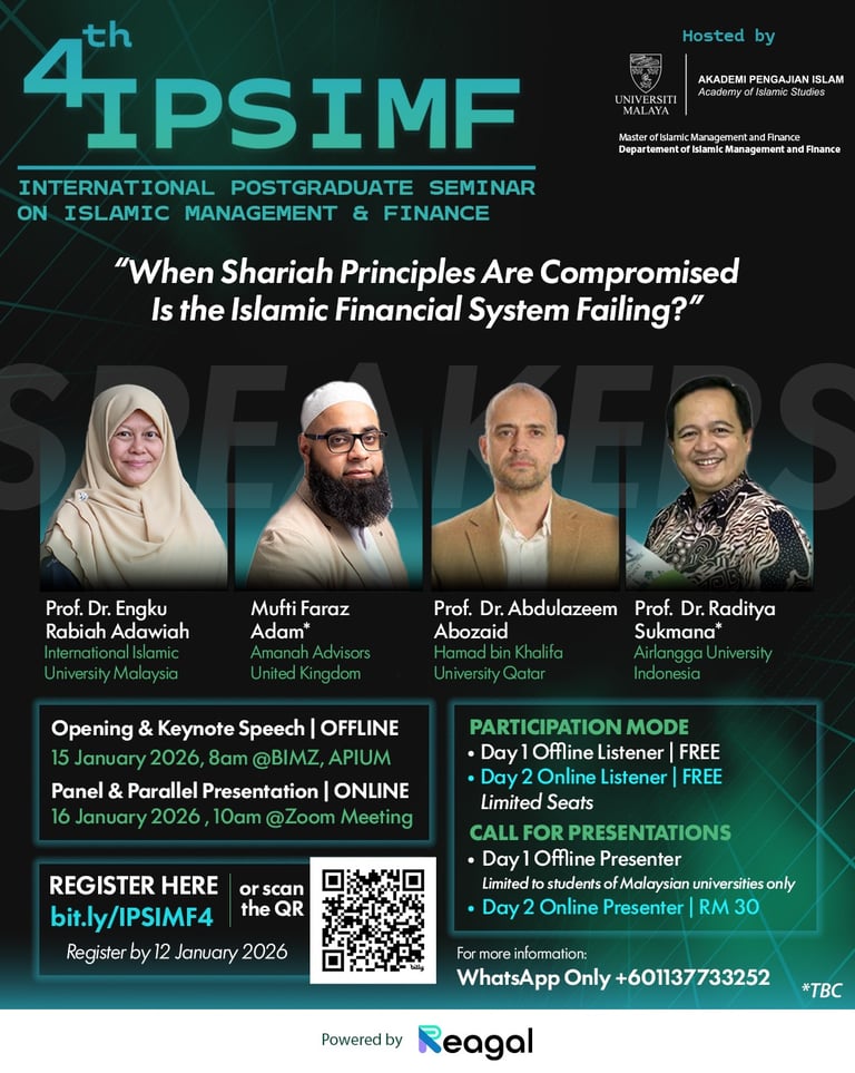 invites scholars, practitioners, and industry leaders from around the world to engage in insightful discussions on the integrity, challenges, and future direction of Islamic financial practices.